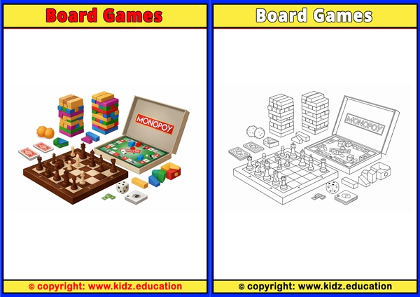 Board Games - Printable Coloring Page for Kids