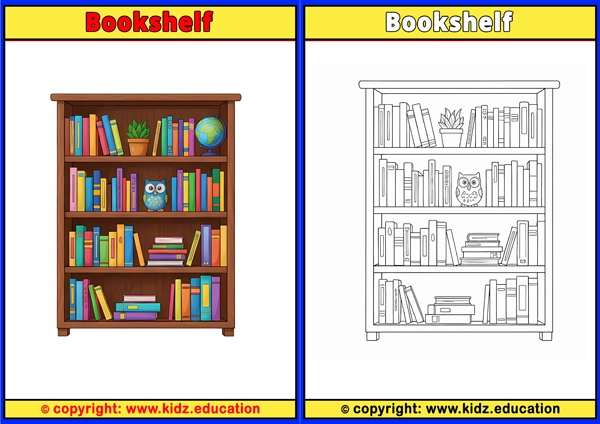 Bookshelf - Printable Coloring Page for Kids