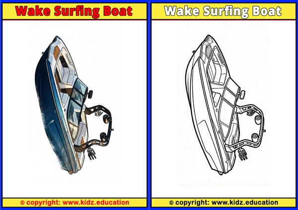 Wake Surfing Boat - Printable Coloring Page for Kids